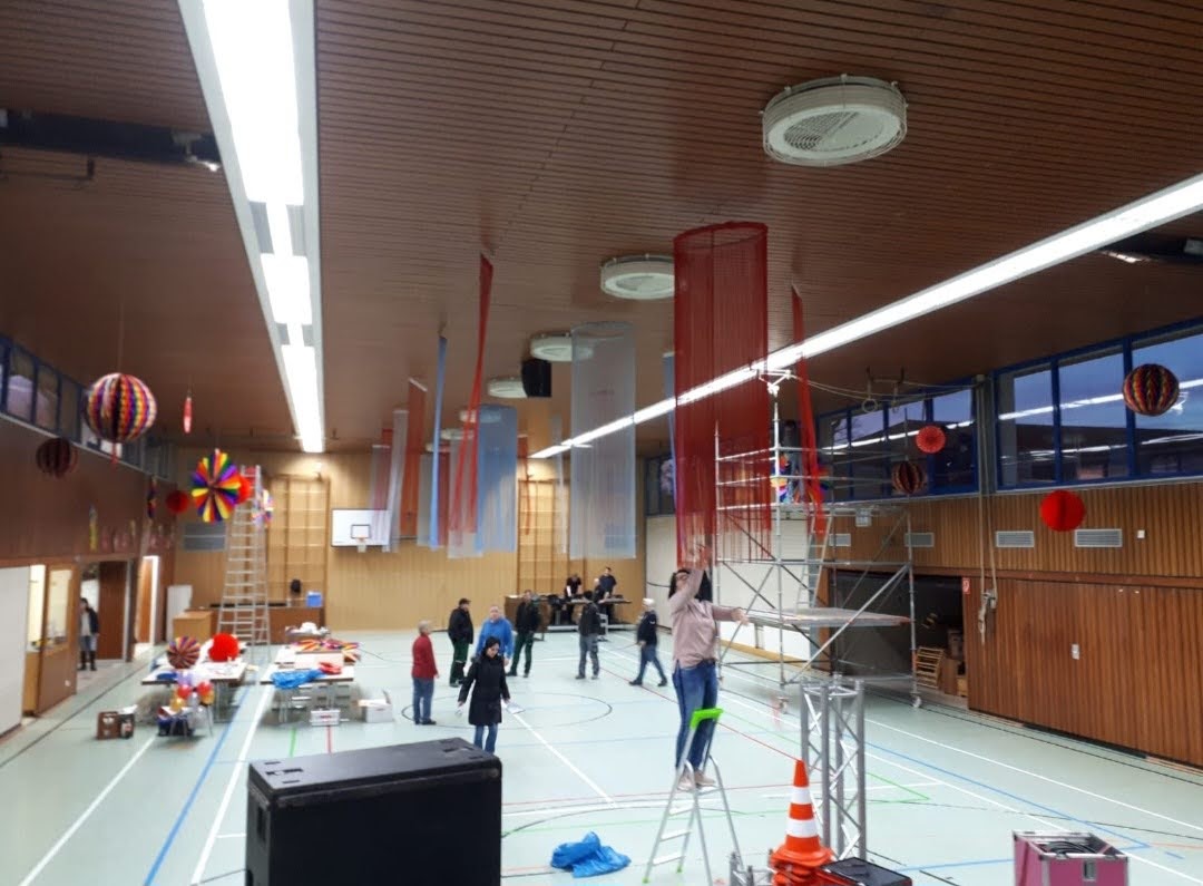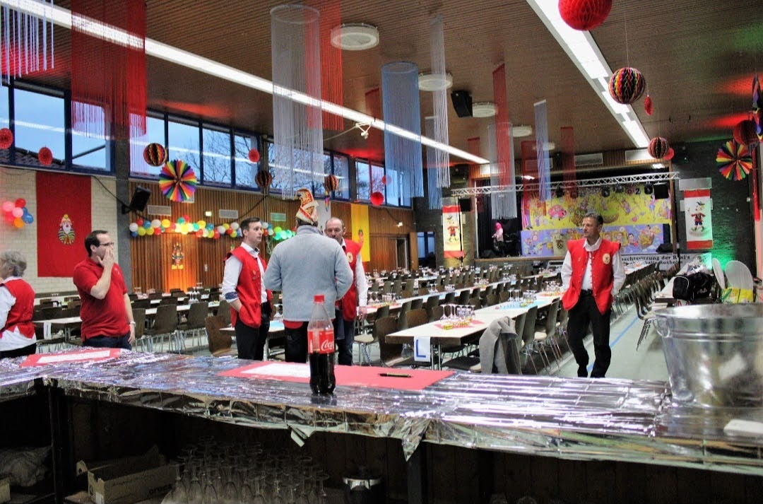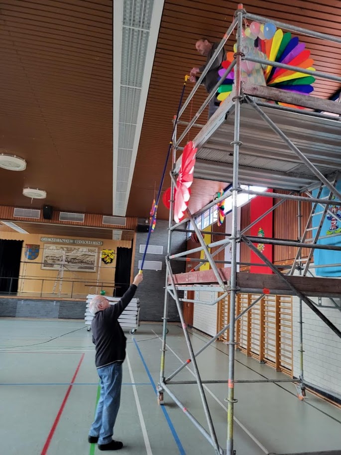 Keine Prunksitzung ohne geschmückten Austragungsort. Seit Anbeginn der Roxls Ära 2010 ist Ingrid Bürner für die Festhallengestaltung verantwortlich. Ingrid erstellt das Konzept des jährlichen Hallenschmucks an Decke, Wänden, auf den Tischen und organisiert die Umsetzung. Tatkräftig unterstützt wird sie dabei von Karin Appel-Diehl, Heike Bambach, Dirk Bambach, Henrik Bambach, Friedel Buschbeck und Christine Seus. Im Herbst vor jeder Sitzung trifft sich das Team und es werden Ideen ausgetauscht. Ingrid überprüft das Lager und erstellt eine Liste der Dinge, die gegebenenfalls neu angeschafft werden müssen.