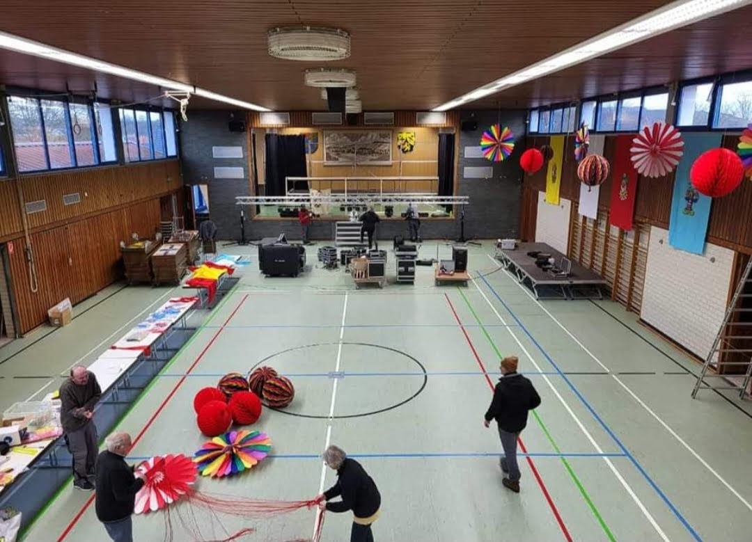 Anfangs im Saal des Gasthauses Hörning wurde die Dekoration der Bühne zum Teil noch selbst gebastelt. Eine Herausforderung für das Team war der Umzug der Roxheimer Fastnacht zurück in die Birkenberghalle, mittlerweile die "gut Stubb" der Roxls, die sie mit Bravour gemeistert haben.