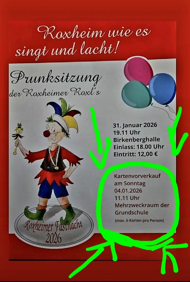 Helau! Wir haben die 5. Jahreszeit eingeläutet... Mit närrischer Unterstützung von Freunden der Roxls haben wir am 11.11. um 19:11 Uhr das Rathaus gestürmt und Bürgermeister Frank Bellmann hat uns mit Humor den Schlüssel übergeben. Im Anschluss führte er die Polonaise der Narren zu Fastnachtsklängen an....Ab jetzt regieren die Narren in Roxheim!(cf)